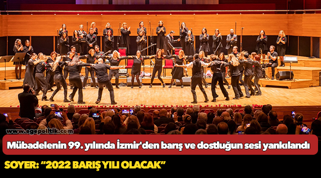 İzmir Büyükşehir Belediyesi tarafından mübadelenin 99’uncu yıldönümü anısına düzenlenen “Uluslararası İki Yaka Sanat Günleri”, İzmir Büyükşehir Belediyesi Mübadale Korosu eşliğinde Anafondan ve Okeanos Orkestrası konseriyle sona erdi. Konserin açılışında Başkan Soyer 2022’yi İzmir için “barış yılı” ilan ettiklerini ifade ederek, “Bu buluşma İzmir’in iyilik yarışının nişanıdır. Barış içinde yaşamanın huzurunu ve gücünü İzmir’de daima göreceğiz” diye konuştu.
