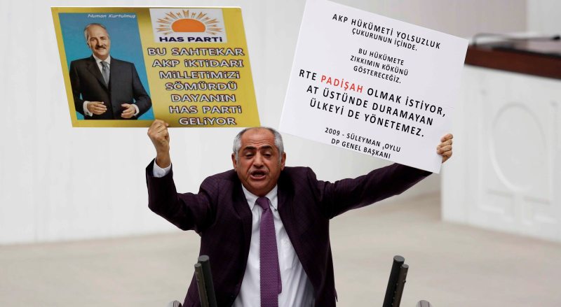 MUSA ÇAM (Devamla) - Cevap veremedi. Bunu Türkiye'nin değişik yerlerinde izleyenler bana ertesi gün telefonlar ettiler: "Sayın Vekilim, biz Numan Kurtulmuş için ömrümüzü verdik. Bizi sattı ama bizim elimizde seçim döneminde kullandığımız bir afiş daha var, onu da size gönderiyorum, ne olur onu kullanın." dediler. İşte gönderdikleri fotoğraflar işte bu arkadaşlar. Ne diyor HAS Parti Genel Başkanı: "Bu sahtekâr AKP iktidarı milletimizi sömürdü. Dayanın, HAS Parti geliyor." diyor arkadaşlar. (CHP sıralarından alkışlar)