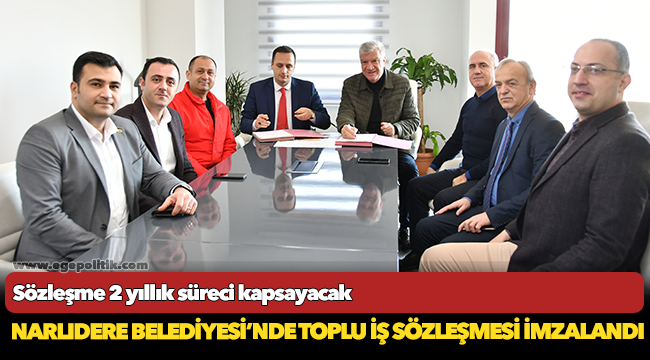 Narlıdere Belediyesi ile Tüm Yerel-Sen İzmir 2 Nolu Şube’si arasında memur ve sözleşmeli personelleri ilgilendiren toplu iş sözleşmesi imzalandı. 2 yıllık süreci kapsayan sözleşmeyi, Narlıdere Belediye Başkanı Ali Engin ve Tüm Yerel-Sen İzmir 2 Nolu Şube Başkanı Ömer Eşki imzaladı.