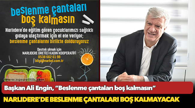 Ocak ayında hayata geçirmeyi planladıkları projeyi oldukça önemsediklerini ifade eden Narlıdere Belediye Başkanı Ali Engin, “Doğru ve dengeli beslenmenin her çocuğun temel hakkı olduğunu hepimiz bilmeli ve ona göre hareket etmeliyiz. Okul çağındaki evlatlarımızın sağlıklı ve dengeli beslenmesi geleceğimizin teminatı çocuklarımız için büyük önem arz ediyor. Çünkü doğru beslenme sadece beden sağlığını etkilemiyor aynı zamanda bilişsel becerilerin gelişmesini de sağlıyor. Yanlış ve eksik beslenme çocukların öğrenme güçlüğü yaşamasına neden oluyor. Biz de bu bilinçle hareket ederek ‘Narlıdere’de beslenme çantaları boş kalmasın’ diyor ve beslenme çantalarını birlikte dolduruyoruz” dedi.