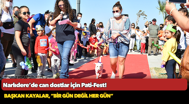 Narlıdere Belediyesi'nin, 4 Ekim Dünya Hayvanları Koruma Günü etkinlikleri kapsamında, bu yıl ikincisini düzenlediği Pati- Fest’te, gün boyunca müzik dinletisi, stil yarışması, çocuklar için palyaço gösterileri düzenlendi. Sevimli köpekler, sahipleri ile birlikSahipli hayvanlar için ücretsiz danışmanlık, sahipsiz can dostlarımız ise sahiplendirme stantları kuruldu. 100 kiloya yakın mama dağıtımı yapıldı.