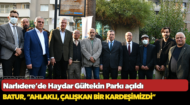Narlıdere Belediyesi, Şehit Onur Akarsu Sokak’ta baştan sona yenilediği parka, geçen yıl yaşamını yitiren Meclis Üyesi Haydar Gültekin’in ismini verdi. Duygusal anların yaşandığı açılış törenine Narlıdere Belediye Başkanı Ali Engin, Konak Belediye Başkanı Abdül Batur, eski milletvekili Mustafa Moroğlu, mahalle muhtarları, STK temsilcileri ve Gültekin’in aile bireyleri ile sevenleri katıldı. 2,5 dönüm alan üzerine kurulu olan park içindeki oyun alanları ve oturma grupları yenilendi. Peyzaj çalışmaları yeniden yapıldı. Törende, Gültekin’in aile bireyleri ve yakın arkadaşları da söz alarak duygularını paylaştı. Park içine Haydar Gültekin’in özgeçmişinin yer aldığı bir de tabela asıldı. Törene katılanlar park alanını birlikte gezdi.