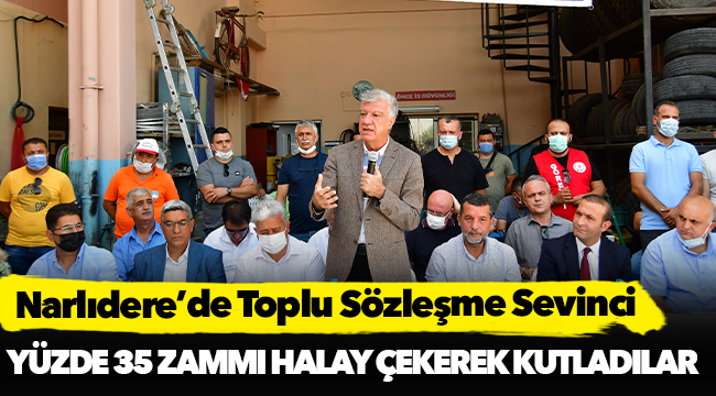 Şantiye Tesisleri’nde düzenlenen imza törenine; Narlıdere Belediye Başkanı Ali Engin, Belediye İş Sendikası TİS Genel Sekreteri Günay Demirtaş, CHP Narlıdere İlçe Başkanı Mesut Durgun, CHP İzmir İl Başkan Yardımcıları, belediye meclis üyeleri, sendikanın 2 No’lu Şube Başkanı Metin Şanlı ve NARBEL çalışanları katıldı. İmzalanan toplu sözleşme kapsamında, işçilerin maaşlarına ortalama yüzde 35 zam yapılması öngörüldü. İmza töreninin ardından, belediye çalışanları Başkan Ali Engin’e çiçek verdi. Toplu sözleşmeyi memnuniyetle karşılayan işçiler, halay çekerek kutladı.