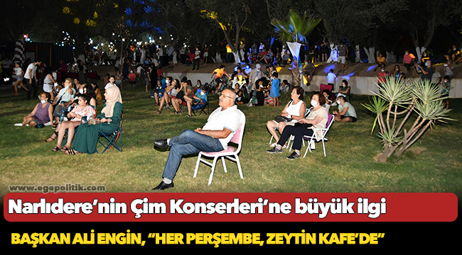 Narlıdere Belediye Başkanı Ali Engin “Ülke olarak zor ve stresli günler geçiriyoruz. Bu konserler dizisi ile bir nebze de olsa rahatlamayı, moral bulmayı hedefliyoruz. Pazaryerinin üst kısmında, zeytinliklerin içinde yeni oluşturduğumuz Zeytin Kafe’de, her hafta gerçekleşecek konserlere sizleri de bekliyoruz” dedi.