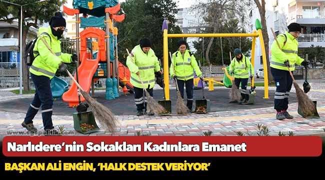Narlıdere Belediyesi Temizlik İşleri Müdürlüğü’nün bünyesindeki kadın personeller, ellerindeki süpürgelerle sokakları temizliyor. Park ve kaldırımlar başta olmak üzere tüm kamusal alanların temizliğinden sorumlu olan 28 kadın personel, görevini en iyi şekilde yerine getiriyor. Kadınlara en büyük desteği ise Narlıdere halkı veriyor.