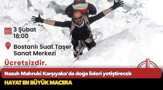 Nasuh Mahruki, Yamanlar’daki programa başlamadan önce kent merkezinde 3 Şubat Perşembe günü saat 18.00’de Karşıyakalılar ile buluşacak. Bostanlı Suat Taşer Sanat Merkezi’nde “Hayat En Büyük Macera” başlıklı söyleşi her yaştan katılımcıya açık olmakla birlikte tamamen ücretsiz bir şekilde gerçekleştirilecek.