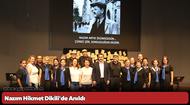 Dikili Belediyesi Tiyatro Topluluğu tarafından düzenlenen "Nazım Hikmet'in İzinde" başlıklı şiir gecesinde usta şairin memleket özlemi, tutsaklığı, yaşama sevgisi eserleri ile seslendirildi.