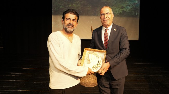 Oyunun sonunda sahneye çıkan Belediye Başkanı Ünal Işık, oyuncu Erkan Bektaş’a anı objesi takdim ederek teşekkür etti. 1980 darbesinin ardından kitapların yasak olduğu yıllarda Nazım Hikmet’in Kurtuluş Savaşı Destanı kitabına arkadaşı sayesinde ulaştığını anlatan Başkan Ünal Işık, “Şeyh Bedreddin Destanı’nı lise birinci sınıftayken okumuştum. Öyle etkilemişti ki beni defalarca okudum. Kurtuluş Savaşı’nın boşa verilmediğini, özgürlüğün ve bağımsızlığın bizim damarlarımızda dolaşan kanda mevcut olduğunu o gün anladım. Kurtuluş Savaşı Destanı kitabını okuduktan sonra Nazım Hikmet hayranı oldum. Neredeyse tüm şiirlerini okuduğum, birçok şiirini de ezbere bildiğim büyük ustanın yokluğunu, kesik bir kol gibi omuz başımda hissediyorum. Nazım’ın yokluğu ülkemiz için çok büyük kayıptır. Ülkesini çok seven Nazım’ın ömrü, sürgünlerde geçti. Anadolu’da bir köy mezarlığında, bir çınar ağacının altında yatmayı vasiyet eden Nazım Hikmet, ne yazık ki memleketinden çok uzaklarda yatıyor. Nazım’ın şiirleri tüm dünyaya ulaşmışken biz yanı başımızdaki ülkeden onun mezarını ülkemize taşıyamadık. Dilerim bir gün mezarı çok sevdiği Anadolu’ya taşınır” diye konuştu.