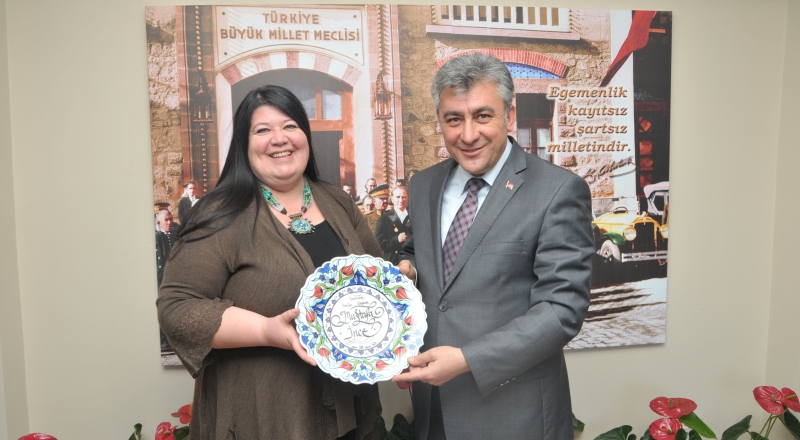 Nevvar -Salih İşgören Vakfı Genel Koordinatörü Şahin, Başkan İnce’ye ziyaretin anısına üzerinde başkanın isminin yazılı olduğu çini tabak verdi, teşekkür etti. Başkan İnce de Şahin’e belediyenin kültür yayınlarının yer aldığı bir çanta hediye etti.