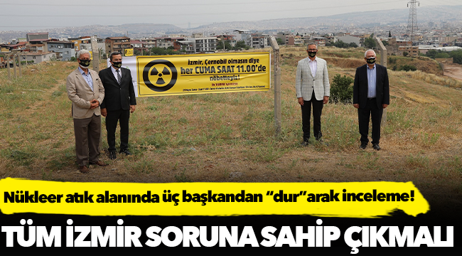 İzmir’in Çernobil’i olarak bilinen alanda toprağa gömülü halde bulunan ve normal değerin 219 katı fazla radyasyon yayan radyoaktif atıkların 14 yıldır toprağa, suya ve havaya karışarak tüm İzmir’in sağlığını tehdit ettiğini söyleyen Başkan Arda, herkesin bu soruna sahip çıkması için çağrı yaptı.