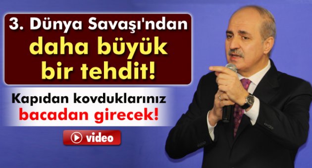 Göç sorunun dünyayı tehdit eden önemli sorunlar arasında yer aldığına dikkat çeken Numan Kurtulmuş, "Eğer dünya sistemi ve dünyanın temel aktörlerinin göç konusundaki tavırları bu şekilde devam ederse küresel göç tehdidi 3'üncü Dünya Savaşı'ndan daha büyük bir tehdit olarak insanlığın gündeminde devam edecektir. Göçlerle ilgili bugün fevkalade önemli bir konuyla karşı karşıyayız. Aylan bebeğin cesedi kıyıya vurana kadar maalesef dünya kamuoyunda yeterli hassasiyet oluşmadı. Çünkü mesele bir çok ülkenin insanı için, birçok ülkenin siyaset yapıcıları için uzaklarda, ötede,doğuya ait bir meseleydi ve Doğunun çaresiz, biçare çok da yüzüne bakılası olmayan insanlarının bir iç sorunu olarak algılanıyordu" dedi