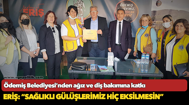 Ağız ve diş sağlığının öneminin kavranması ve bu konuda alışkanlık oluşması hedefiyle güzel bir dayanışmaya imza atıldığını söyleyen Ödemiş Belediye Başkanı Mehmet Eriş, “Ödemiş Belediyesi olarak her yaştan vatandaşımızın sağlığını düşünüyor, destekleyici anlamda faaliyetlerimizi pandeminin izin verdiği ölçüde sürdürüyoruz. Her şeyin başı sağlık, sağlığın başı da ağız ve diş sağlığından geçiyor. Çocuklarımızın gülüşleri pırıl pırıl olsun istiyorsak bu alandaki farkındalığı güçlendirmemiz gerekiyor.