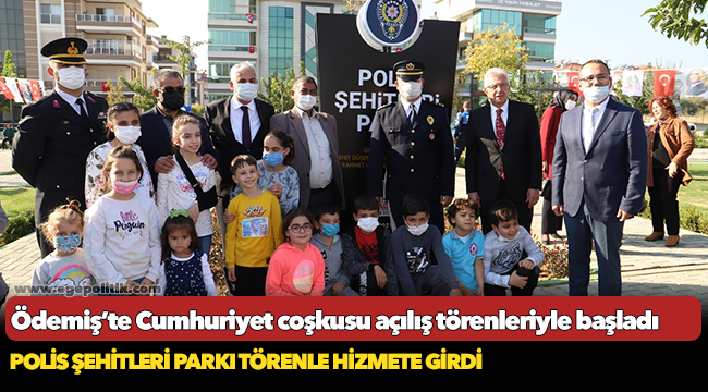 Cumhuriyetimizin 98. yılı coşkusu Ödemiş’te dolu dolu bir etkinlik programıyla yaşanıyor. Ödemiş Belediyesi’nin Cumhuriyet Bayramı kutlama etkinlikleri kapsamında Ödemiş Belediyesi’nin Süleyman Demirel Mahallesi’nde inşa ettiği Polis Şehitleri Parkı törenle halkın hizmetine sunuldu.