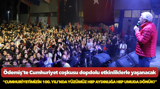 “Cumhuriyetimizin 100. Yılı’nda yüzümüz hep aydınlığa hep umuda dönük” diyen Ödemiş Belediye Başkanı Mehmet Eriş, tüm Ödemişlileri Cumhuriyet Bayramı kutlamalarına davet ederek, “Büyük Önderimiz Mustafa Kemal Atatürk’ün bizlere emaneti olan Cumhuriyetimizin 100. Yılına kavuşmanın kıvancı ve heyecanı içerisindeyiz. Bizi biz yapan Cumhuriyetimizin 100. Yılı’nı Atatürk’ün izinden yürüyen öğrencileri olarak layık olduğu coşku ve heyecanla kutlamak üzere ilçemizdeki tüm kamu kuruluşlarımızla da işbirliği içerisinde dopdolu bir program hazırladık. Kent merkezimizin yanı sıra beldelerimizde de yine o heyecanı yaşamak istedik.