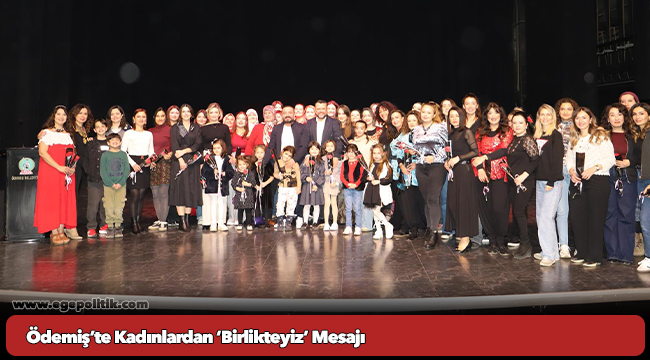 8 Mart Dünya Kadınlar Günü etkinlikleri kapsamında Ödemiş’te düzenlenen program sonunda sahnedeki kadınlar birlikteyiz mesajı verdi. Başkan Turan, demokratik, ileri bir toplum için kadınların her alanda güçlendirilmeleri, gerektiğini ifade etti.