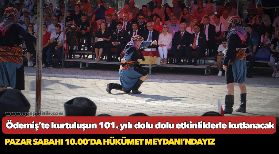 Ödemiş’in düşman işgalinden kurtuluşunun 101. Yıl dönümü etkinlikleri 3 Eylül Pazar sabahı 10.00’da Hükümet Meydanı’ndaki kutlama töreniyle başlayacak. Hükümet Konağı önündeki Atatürk Anıtı’na çelenklerin sunulması ile başlayacak programda Ödemiş Belediye Başkanı Mehmet Eriş, Ödemişlilere seslenecek. Ödemişli efeler ve halkoyunu ekipleri gösterilerini sergileyecek.