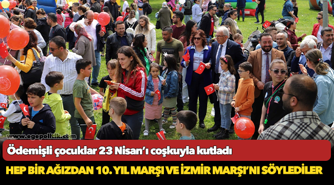 Ödemiş’te 23 Nisan Ulusal Egemenlik ve Çocuk Bayramı’nın 103. yılı kutlama etkinlikleri çerçevesinde Ödemiş Belediyesi tarafından 125. Yıl Kültürpark’ta Çocuk Şenliği düzenlendi. Çocuk Şenliği geçen yıl olduğu gibi bu yıl da büyük ilgi gördü. Ödemiş Belediye Başkanı Mehmet Eriş, eşi Selma Eriş, CHP Ödemiş İlçe Başkanı Mustafa Turan ve Belediye Meclisi üyeleri çocukların bayram sevincine ortak oldu. Çocuklarla birlikte hep bir ağızdan 10. Yıl Marşı’nı ve İzmir Marşı’nı söyledi.
