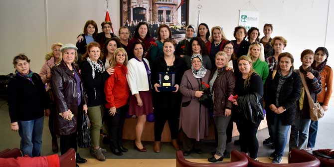 Film gösterimi ve söyleşinin ardından Bornova Belediye Başkan Yardımcısı Belgüzar Başer Köpüklü ile Kent Konseyi Kadın Meclisi Başkanı Raziye Sarısaltık, Gülten Taranç’a plaket ve çiçek vererek teşekkür etti.