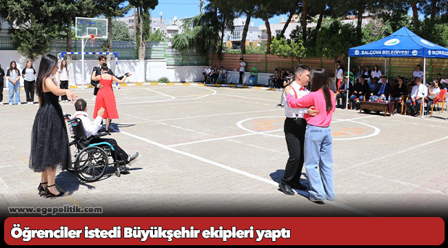 Engelliler Haftası'nda Rasim Önel Ticaret Mesleki ve Teknik Anadolu Lisesi'nin gösterisine katılan İzmir Büyükşehir Belediyesi ekipleri, öğrencilerin isteği üzerine okula piknik masası kazandırarak çiçek dikti.