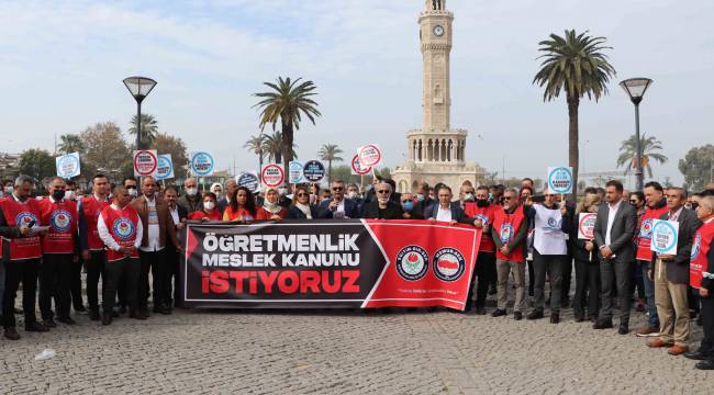 Eğitim-Bir-Sen İzmir 1 Nolu Şube tarafından Konak Meydanı’nda gerçekleştirilen basın açıklamasına Şube Yönetim Kurulu Üyeleri, İlçe Temsilcileri ve Eğitim-Bir-Sen üyeleri katıldı. Basın açıklamasında konuşan Eğitim-Bir-Sen İzmir 1 Nolu Şube Başkanı ve Memur-Sen İzmir İl Temsilcisi Ali Kaya, öğretmenin özlük haklarını ve yetkilerini genişletecek, öğretmene destek olacak bir içerikle Öğretmenlik Meslek Kanunu’nun çıkarılması beklentisinin artık karşılanması gerektiğini belirterek, “24 Kasım’da öğretmenlerimize verilebilecek en büyük müjde, özlük haklarını koruyup geliştirecek, çalışma şartlarını iyileştirecek, uğradıkları şiddeti önleyecek, sorunlarına çözüm üretecek ve mesleklerinin itibarını hak ettiği yere taşıyacak bir içerikle Öğretmenlik Meslek Kanunu’nun TBMM gündemine getirilmesidir” ifadelerini kullandı.