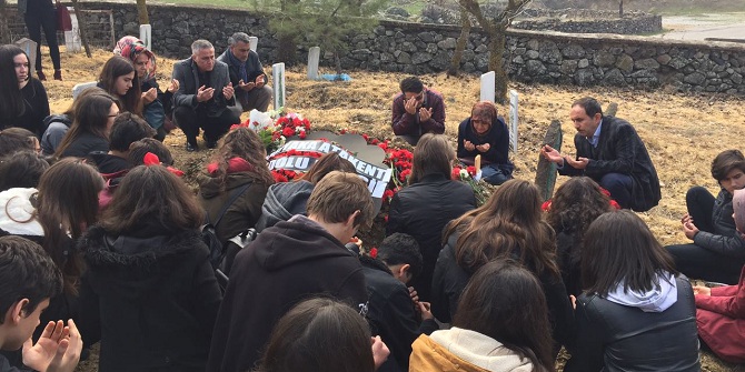 Atakent Anadolu Lisesi Müdürü Hakan Saral, 5 öğretmen, 8 veli ve 33 öğrenci Manisa’ya bağlı Şakran Köseler köyündeki mezarını ziyaretleri sırasında ağlayanların olması dikkat çekti.