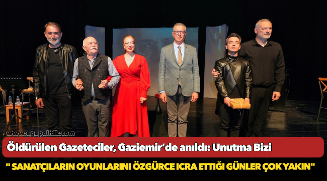 Gaziemir Belediyesi’nin öldürülen gazeteciler anısına düzenlediği etkinlikte sahne alan Levent Üzümcü ile Orhan Aydın, Unutma Bizi oyununu sahneledi. Etkinlikte konuşan Başkan Arda, “Size söz, gazetecilerin özgürce yazdığı; sanatçıların, sanatlarını özgürce icra ettiği günler çok yakın” dedi.