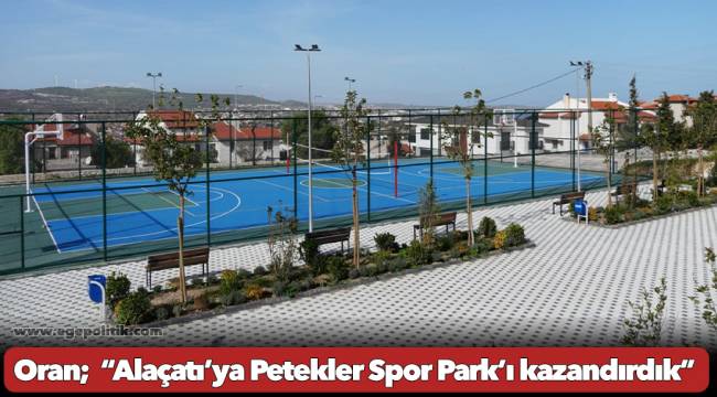Çeşme Belediye Başkanı M. Ekrem Oran, her yaşta her branşta spor ilkesiyle, kente kazandırdığı spor alanlarına yenilerini eklediklerini belirterek; “4 bin 200 metre kare alan üzerinde yer alan ve içerisinde basketbol/voleybol sahası, çocuk oyun alanı, fitness alanı, kafe alanı, oturma alanları ve kaya bahçesi bulunan Alaçatı Petekler Spor Parkı’nı kentimize kazandırdık. Betonu değil, yeşili arttırarak, meydanlarımızı, parklarımızı genişletmeye devam ediyoruz. Vatandaşlarımızın aileleriyle ve sevdikleriyle nefes alabilecekleri bir yaşam alanını hayata geçirmenin mutluluğunu yaşıyoruz. İlçemize hayırlı ve uğurlu olsun” dedi.
