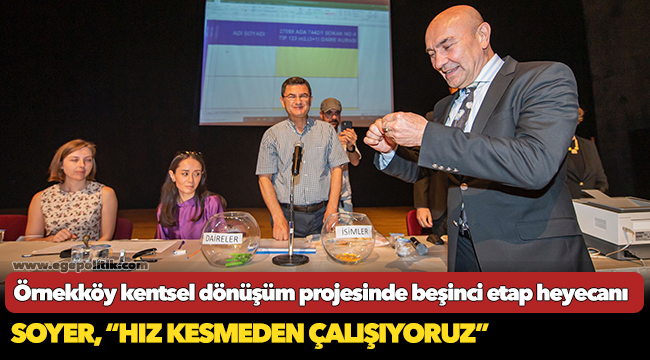 Bugün 5. etapta 560 adet bağımsız birimden hak sahiplerine ait olanlar için kura çekmek üzere buluştuklarını belirten Başkan Soyer, “Kura çekimi tamamlandıktan sonra çalışmaları hızla tamamlayarak kat karşılığı anahtar teslim yapım ihalesini yapacağız. Örnekköy’ü sosyal donatılara, yeşil alanlara ve sağlıklı bir altyapıya kavuşturmanın heyecanını yaşıyoruz” ifadelerini kullandı.