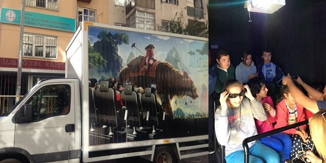 Okul önüne gelen 12D sistemli kamyonette öğrenciler seçtikleri filmleri izlerken öğretmenleri de onları yalnız bırakmadı. İlgi Özel Eğitim ve Rehabilitasyon Merkezi Eğitim Koordinatörü Selvi Çalış, Sinemanın çocukların zihinsel, duygusal ve sosyal gelişiminde önemli rol oynadığını ifade ederek, “Sinema ile çocukların hayal güçleri genişler. Toplu yerlerde uyulması gereken kuralları öğrenirler. Sinema 5 duyuya hitap etmesi açısından gelişimlerine katkı sağlar”dedi. Çalış ayrıca bu tarz etkinlikleri çoğaltarak çocukların gelişimlerine katkıda bulunmaya çalıştıklarını vurguladı.