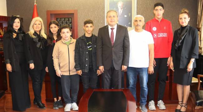 Genç Aydınlar Spor Kulübü’nün kurucuları Büşra Meltem Yeter, Burhanettin Aydın dereceye giren özel sporcularla Kaymakam Demiri ziyaret etti.