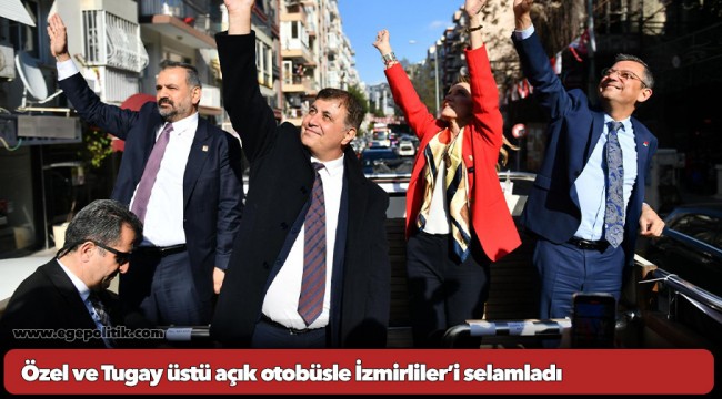 CHP Genel Başkanı Özgür Özel'in İzmir temasları, gün boyu devam etti. Özgür Özel ve CHP'nin İzmir Büyükşehir Belediye Başkan Adayı Dr. Cemil Tugay, Konak’ta Mithatpaşa Caddesi ile Karabağlar İnönü Caddesi’nde, üstü açık otobüsle yurttaşları selamladı. İş yerlerinin önüne ve balkonlara çıkan İzmirliler, seçim şarkıları çalan CHP konvoyunun coşkusuna katıldı. Cadde boyunca ellerinde parti bayrağı ve Türk bayraklarıyla konvoyu karşılayan yurttaşlar, bazı yerlerde meşalelerle Özel ve Tugay'ı selamladı. Özel ve Tugay da halkın kendilerine yönelik coşkusuna ortak oldu.
