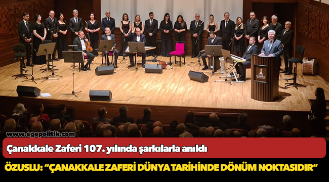 İzmir Büyükşehir Belediyesi, 18 Mart Şehitleri Anma Günü ve Çanakkale Deniz Zaferi'nin 107. yılını Ahmed Adnan Saygun Sanat Merkezi'nde düzenlenen konserle andı. İzmir Büyükşehir Belediyesi Başkan Vekili Mustafa Özuslu, “Çanakkale Zaferi kazanılmış bir zaferden çok daha fazlasıdır. Dünya tarihinde bir dönüm noktasıdır” dedi.