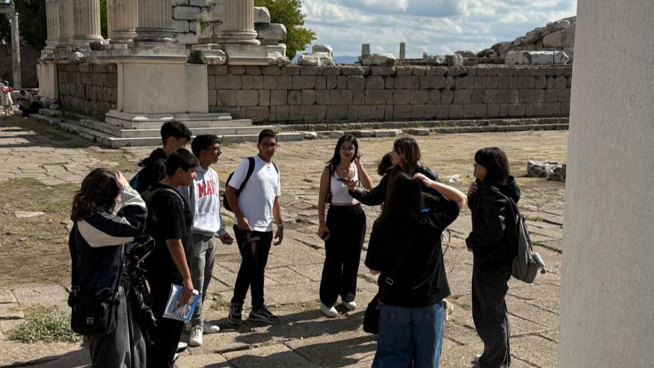 İzmir Büyükşehir Belediyesi bünyesinde kurulan Çiğli Dil Destek Merkezi üyesi öğrenciler, İngilizce speaking dersi kapsamında Bergama Pergamon Antik Kenti’ni gezdi. Gezide öğrenciler, öğretmenlerin de katılımıyla tarihi mekân ve eserler üzerinden karşılıklı İngilizce diyalog kurma pratiği yaptı.
