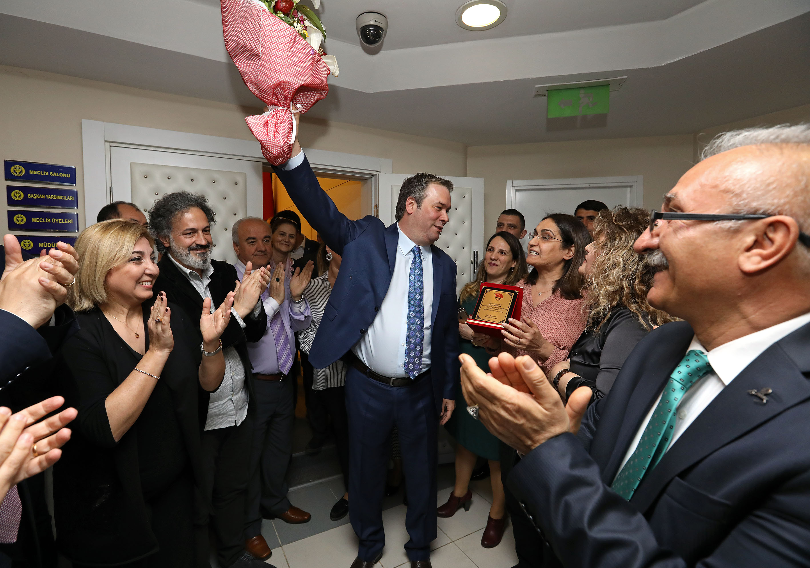 Buca Belediyesi personelinin sürpriz ziyareti Başkan Levent Piriştina’yı duygulandırdı. Belediye şirketlerine geçişi tamamlanan taşeron işçiler ve geçtiğimiz hafta Türkiye’nin en iyi toplu sözleşmesiyle haklarını alan yüzlerce memur meclis toplantısı öncesi sürpriz yapıp Başkan Piriştina’yı alkışlar ve çiçeklerle karşıladı.