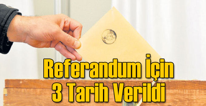 Cumhurbaşkanı Tayyip Erdoğan'ın bu hafta onaylaması beklenen partili cumhurbaşkanlığını öngören anayasa değişikliği teklifi referandumu için üç tarihin söz konusu olduğu öne sürüldü.