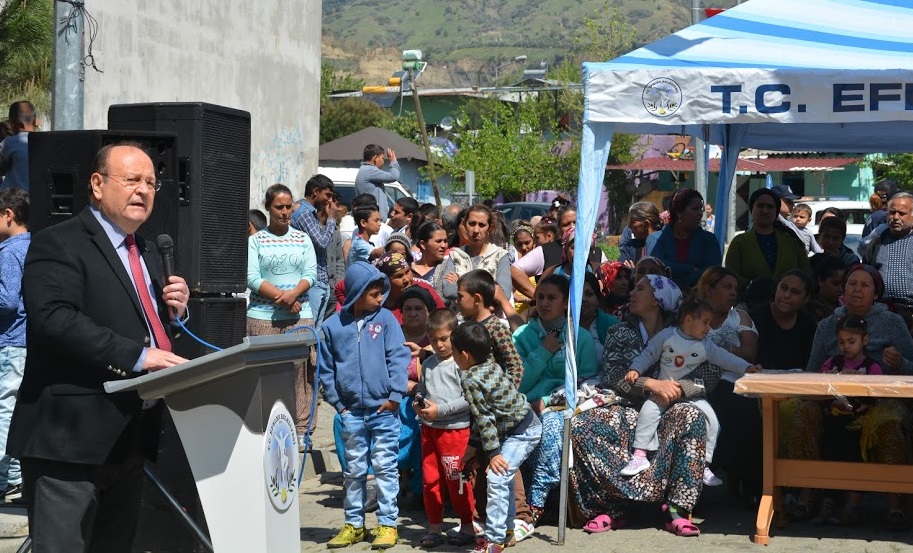 Roman vatandaşların büyük bir coşku ve sevgiyle karşıladığı T.C. Efeler Belediye Başkanı M. Mesut Özakcan, hiçbir vatandaşı dil, din, ırk, renk, mezhep ayırımı yapmadan kucakladıkları bir dünya görüşü ile hizmet anlayışına sahip olduklarını belirterek, “Bizim dünya görüşümüzde, siyaset anlayışımızda, hiçbir ayrım gözetmeden, dil, din, ırk, renk, mezhep ayrımı yapmadan bir görev anlayışımız var, hizmet anlayışımız var. 30 Mart 2014 tarihinden bu yana Aydın ilimizin Büyükşehir oluşu dolayısıyla merkezde tek ilçe olarak Efeler ilçemiz olmuştu. 3 yılımızı dolduran görev süresini geride bıraktık. Bu 3 yıl görev süremiz içerisinde Aydın'ımıza Efeler ilçemize katılan 56 köy ve 5 beldemiz de dahil olmak üzere yeşil alanları gördüğünüz gibi park alanları haline getirerek kentimizi daha güzelleştirmek, şehrimizi daha yaşanılır, yaşanmak istenen hale getirmek için, bugüne kadar elimizden gelen gayreti gösterdik. Efeler Belediyesi olarak yasal çerçeveler içerisinde sizlerin yanında olmaya çalıştık. Muhtarlarımızdan bize gelen talepler doğrultusunda temizlik hizmetlerimizden, cenaze defin hizmetlerini en iyi şekilde yerine getirmek için gayret içinde olduk. Sizlerle de her zaman gönül birliği içinde olduğumuzu bildirmenizi isterim. Bu ülke, Çanakkale Savaşı'ndan başlayarak 250 bine yakın şehidimizin yattığı Çanakkale'den, İzmir'e kadar uzanan o savaş güzergahında yüz binlerce şehit kanının babaların, anaların, bacıların gözyaşları üzerine kuruldu. 7 den 70’e hepimiz birey olarak Demokrasimize ve Cumhuriyetimize sahip çıktığımız ölçüde ülkemizde huzur, barış, kardeşlik, mutluluk içinde geleceğe umutla bakan bir Türkiye ortamı yaratabiliriz. Bir deyiş vardır, ‘Romanın malını eşeğe yüklemişler dolmamış, keyfini deveye yüklemişler almamış, dünyanın en keyifli insanlarıdır Romanlarımız.’ Yaşamlarınız boyunca dünyanın en keyifli insanları olmanızı temenni ederim. Hayırlı günler, Hayırlı yaşamlar, Hayırlı bir gelecek dilerim” diyerek referandum ile ilgili de mesaj verdi.Öğrencilerin ve Roman vatandaşların dans gösterileri ile devam eden kutlamalarda T.C. Efeler Belediyesi tarafından vatandaşlara tavuklu pilav, lokma ve ayran ikram edildi. Ilıcabaşı İlkokulu ve Ilıcabaşı Ortaokulu öğrencilerinin kurduğu dans ekiplerinin muhteşem roman dansları gösterisi, dikkatle izlenirken, vatandaşlar minik romanların danslarını görüntüleyebilmek için adeta birbirleriyle yarıştılar. Program, bütün roman vatandaşların dans etmesiyle son buldu.