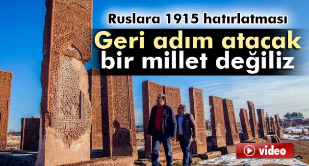 "Ruslar ilçemize geldiklerinde gecenin karanlığında bu ovada büyük bir ordu gördüklerini hisseder ve sabaha kadar ateş eder. Gün ağardığında ise Ruslar asker değil de mezar taşlarını karşılarında görür. Bu çılgınlıkla Ruslar burada birçok mezar taşına zarar vererek, ilçeden çekilir. Bu konu her ne kadar rivayet olarak anılsa da mezar taşlarımız o gün yaşanan vahşeti açıkça göstermekte ve ispat etmektedir. Son zamanlar da ülkemiz ve Rusya arasında yaşanan krizde, Rusya'nın ülkemizi doğal gaz ile tehdit etmesiyle karşı karşıyayız. Ancak biz, doğal gaz veya herhangi bir yaptırım gücüyle geri adım atacak bir millet değiliz. Biz, 1915'in Türkiye'si de değiliz. Rusları bu bölgeye abidevi mezar taşlarını görmeye bekliyoruz."