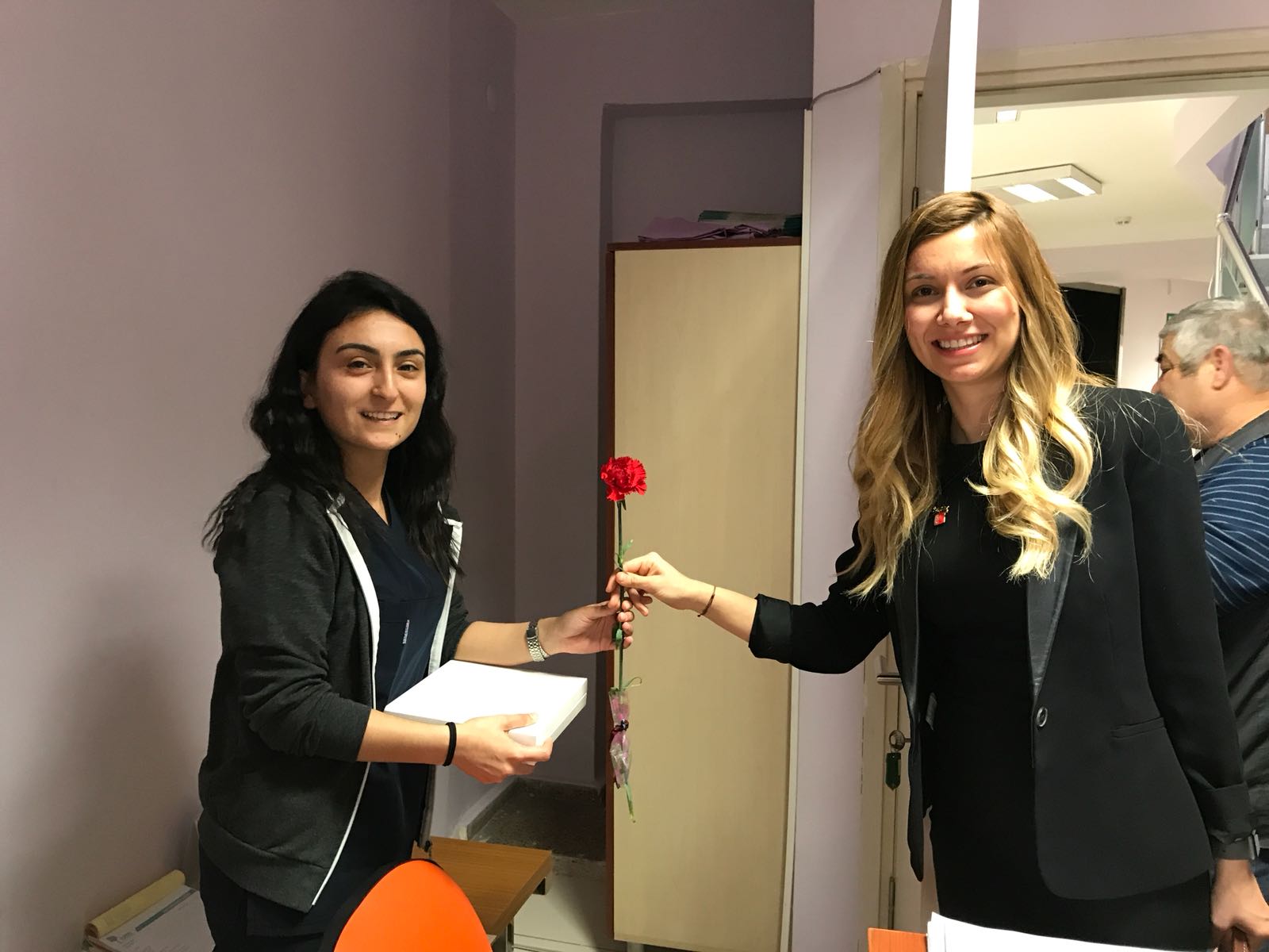 Ziyaret edilen sağlık çalışanlarından bazıları Ege Üniversitesi'nden emekli akademisyen Prof. Dr. Filiz Büyükkeçeci'nin öğrencileri olduğu öğrenildi. Hocalarını karşılarında gören hekimler sevinçlerini gizleyemedi.