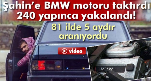 Bursa'da, Şahin marka aracıyla gerçekleştirdiği tehlikeli gösterileri sosyal paylaşım sitesinde paylaşan genç, polis tarafından takibe alındı. Merkez Yıldırım ilçesinde 61 AT 317 plakalı aracıyla gezintiye çıkan Tanju Akdoğan (25), polis tarafından yakalandı. Genci durduran polis ekipleri, aracın kaputunu açtığında BMW marka motorla karşılaştı. Şaşkınlığını gizleyemeyen polis ekipleri, gencin aracına ve ehliyetine el koydu. Sosyal medyadaki videoları sebebiyle 81 ilde yaklaşık 5 aydan bu yana aranan otomobilin, MOBESE kameralarına 240 kilometre hızla yakalandığı öğrenildi.