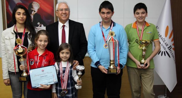 Satranç Şampiyonası’nda girdiği müsabakalar sonunda Türkiye Şampiyonu olan Karabağlar Yamanlar Ortaokulu öğrencisi Umut Erdem Gündüz, Türkiye Şampiyonu olan Özel Bilgi Kuşağı Ortaokulu öğrencisi Mustafa Kavukçu, Türkiye 4'üncüsü olan İzmir Kız Lisesi öğrencisi İrem İnci Bayram, 10 yaş kategorisinde Türkiye Şampiyonu olan Necip Fazıl Kısakürek ilkokulu öğrencisi Suğra Tepeli ve yine 7 yaş kategorisinde Türkiye 4'üncüsü Şehit Muzaffer Erdönmez İlkokulu öğrencisi Ela Keskinler, öğretmenleri ve aileleri ile birlikte Karabağlar Belediye Başkanı Muhittin Selvitopu’nu ziyaret etti.