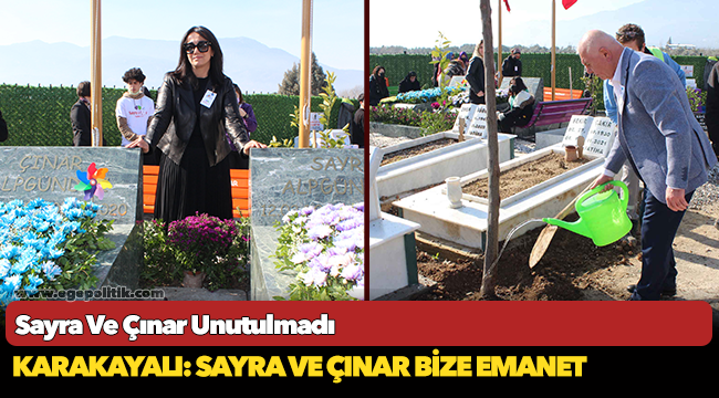 Kemalpaşa Belediye Başkanı Rıdvan Karakayalı, CHP Kemalpaşa İlçe Başkanı Ahmet Cemil Balyeli, İzmir Büyükşehir Belediyesi Mezarlıklar Daire Başkanı Hülya Şahin, İzmir Büyükşehir Belediyesi Kemalpaşa Şube Koordinatörü Mehmet Serhat Tezbaşaran, Kemalpaşa Mezarlıklar Bölge Sorumlusu Göksel Ün, Sayra ve Çınar’ın ailesi, arkadaşları ve yakınlarının katıldığı anmada Sayra ve Çınar’ın ailesinin yanı sıra Başkan Karakayalı ve Ahmet Cemil Balyeli de ağaç dikti.