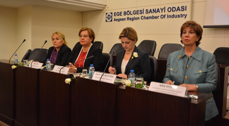 Ege Bölgesi Sanayi Odası Meclis Salonu gerçekleşen panele Eski Bakan Işılay Saygın, CHP Genel Başkan Yardımcısı Selin Sayek Böke, Urla Belediye Başkanı Sibel Uyar, Konak Belediye Başkanı Sema Pektaş, EBSOV Kadınlar Birliği Başkanı İhsan Özduran, EBSOV Meclis Başkan Yardımcısı Işın Yılmaz ve EBSOV Kadınlar Birliği üyeleri katıldı.