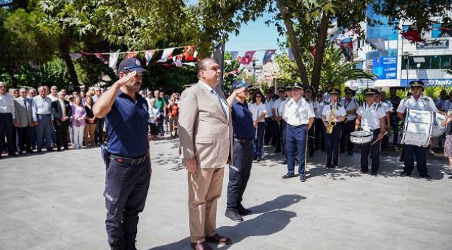 Seferihisar Atatürk Meydanı’nda gerçekleşen çelenk sunma törenine, Seferihisar Kaymakamı Mehmet Şerif Olcaş, Seferihisar Belediye Başkanı İsmail Yetişkin, Seferihisar Merkez Eğitim Alay Komutanı Albay Enver Öztürk katıldı.