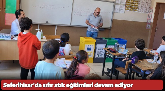 Seferihisar Belediyesi İklim Değişikliği ve Sıfır Atık Müdürlüğü tarafından, ilçedeki okullarda sıfır atık eğitimleri veriliyor. Çocuklara çevre bilinci kazandırmayı amaçlayan eğitimlerde, iklim değişikliği, çevrenin ve doğal zenginliklerin korunması, israfın ve atıkların azaltılarak geri dönüşüme kazandırılması konularında öğrenciler bilgilendiriliyor. Su ayak izi, karbon ayak izi, atıkları kaynağında ayrıştırma, atık grupları ve renkleri, iklim değişikliği, yenilenebilir enerji kaynakları hakkında da bilgiler verilmesinin ardından, karşılıklı soru cevap şeklinde tamamlanan eğitimler, çocuklar için keyif verici bir hale getiriliyor. Belediye, yaz tatiline kadar tüm okullarda eğitim çalışmalarını tamamlamayı hedefliyor.