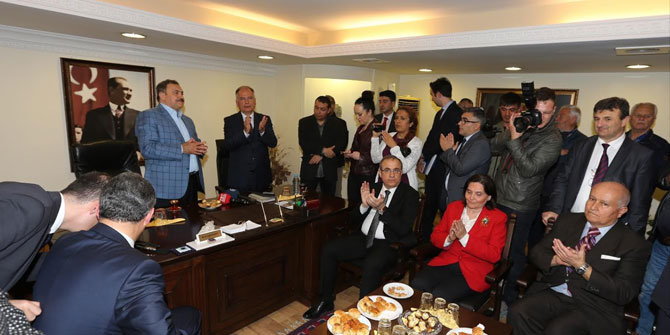 Efes Tiyatro Salonu'ndaki sertifika dağıtım törenine katılan bakan Eroğlu ilçeden ayrılmadan Selçuk Belediyesi’ni ziyaret etti. Orman ve Su İşleri Bakanı Prof. Dr. Veysel Eroğlu’ nu Selçuk’ta ağırlamaktan dolayı ilçe halkı adına onur duyduklarını dile getiren Selçuk Belediye Başkanı Dr. Dahi Zeynel Bakıcı; “Selçuklular olarak ilçemize verdiğiniz destekler için sizlere müteşekkiriz. Sizlerden her türlü desteği alıyoruz. Meteoroloji binasının Hükümet Konağı olarak değerlendirilmesinde dahi iki kez değişiklik yaptık. Sağolun! Bizleri kırmadınız. Allah razı olsun. Bu sayede Selçuk birde adliye sarayı kazanmış oldu” dedi.