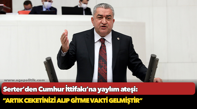 Tüm bu sorunlarının çözümünün seçim olduğunu söyleyen Serter, “Artık ceketinizi alıp gitme zamanı gelmiştir. Derhal sandık bu halkın önüne konacak, sizler de bu ıstıraptan kurtulacaksınız. Milletimiz, Millet ittifakı ile taçlanacak, huzura kavuşacak. Adalet, özgürlük, refah ve güven düzeni Türkiye’yi saracaktır” dedi.