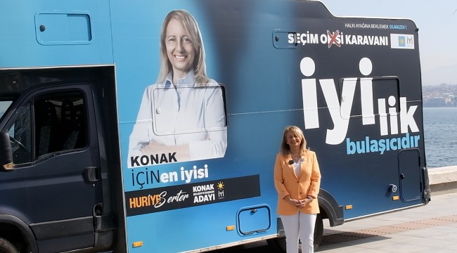 Kampanya sloganları ve görselleri ile kapladığı ofis karavanıyla Konak’ın 111 mahallesini sokak sokak gezen İYİ Parti Konak Belediye Başkan Adayı Huriye Serter, farklı seçim stratejisi ile halktan tam not alıyor. Daha önce STK’lardaki başarılı çalışmalarıyla tanınan İYİ Parti Konak Belediye Başkan Adayı Huriye Serter, “Ben diğer adaylardan farklı olarak Seçim Ofisi açarak seçmenimin gelmesini beklemek yerine Seçim ofisimi seçmenimin ayağına götürmeyi uygun gördüm. Çünkü toplum olarak zor dönemlerden geçiyoruz, böyle bir dönemde seçim ofisi açarak halkı ayağıma beklemek olmazdı” dedi.