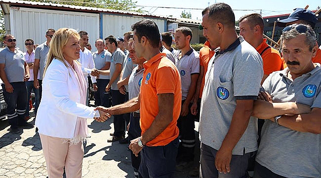 Şantiye alanındaki Fen İşleri ve Temizlik İşleri personelini de ziyaret eden Sibel Uyar, “Sizler bizim yüz akımızsınız. Biz büyük bir aileyiz. Sizler hizmetinizle belediyemizi temsil ediyorsunuz. İyi ki varsınız” dedi. Çalışanlar da Başkan Uyar'ın Kurban Bayramı'nı kutladı.
