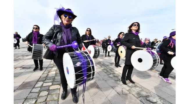 "25 Kasım Kadına Yönelik Şiddete Karşı Uluslararası Mücadele Günü" kapsamında İzmir Büyükşehir Belediyesi tarafından Alsancak Vasıf Çınar Meydanı'nda düzenlenen açılış programı ve yürüyüşe İzmir Büyükşehir Belediyesi Başkan Vekili Dr. Sırrı Aydoğan, İzmir Belediye Başkanı Aziz Kocaoğlu’nun eşi Dr. Türkegül Kocaoğlu, sivil toplum örgütleri temsilcileri ve vatandaşlar katıldı.