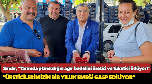 Sındır, “Geçen yıl 8 lira olan iç pazara yönelik kiraz bu sene de 8 lira. Efendiler, toprağını alın teriyle harmanlayan çiftçilerimizin emeğini bir avuç tüccarın insafına bırakmaya vicdanınız nasıl elveriyor. AKP iktidarında üretim planlaması yapılmadı, yapılmıyor, yapılamıyor” dedi.